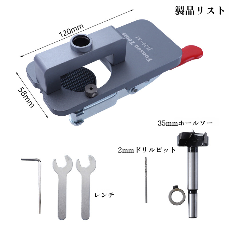 ヒンジオープナー キャビネットドア穴あけ補助工具 穴あきロケーター ヒンジ取り付け工具